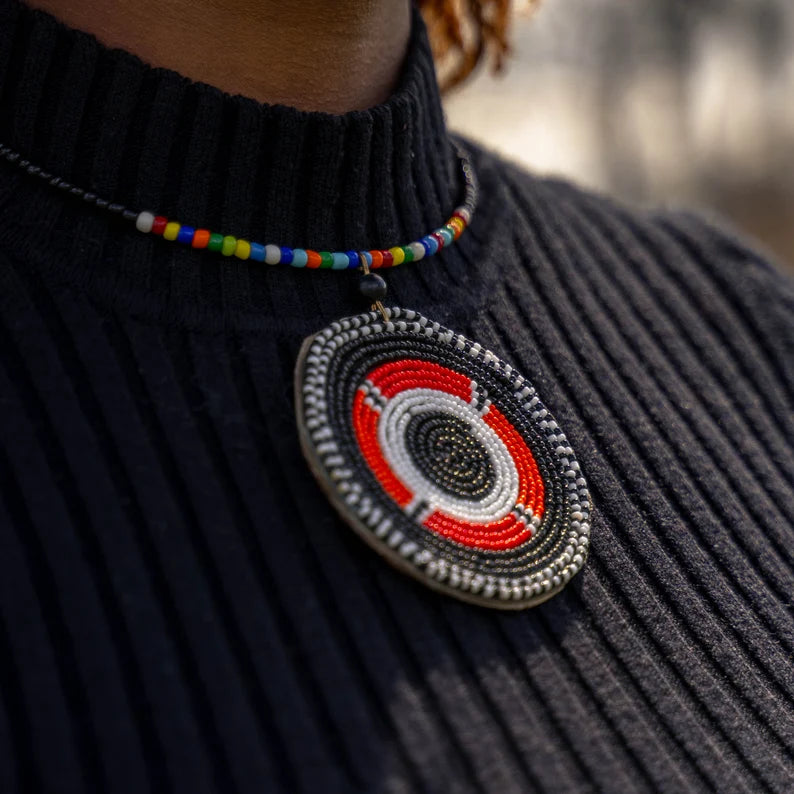 Elevate your style with this unique handmade Maasai necklace bursting with beautiful colors.