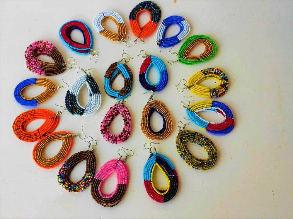 Invest in timeless craftsmanship with these exceptionally beaded maasai earrings. Handmade by Kenyan artisans,durable glass beads in rich, symbolic hues and complex patterns passed down through generations.